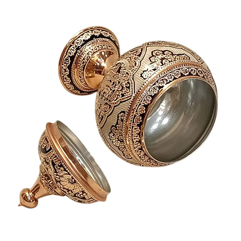 قندان مس نقره کوب پایه دار گرد دستساز نانو زنجان
